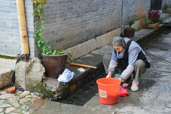 很原生态的村落,民风淳朴,老人家在小溪边洗衣服