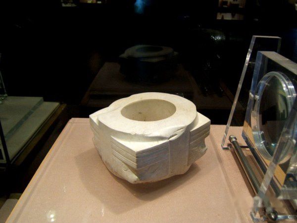蝶形器反面制作粗糙,穿孔周围有一些凸起及纵向凹槽,应为穿绳绑缚之用。此蝶形器不仅反映了当时的象牙工艺水准,更为研究当时人们的思想意识提供了宝贵的资料,堪称旷世珍宝。