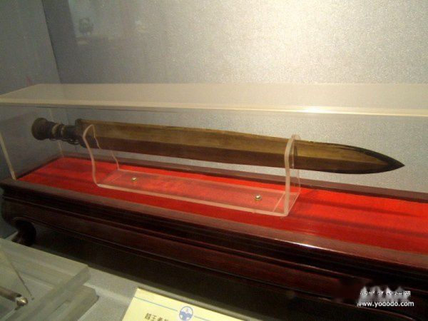 目前发现的青铜剑,保存最为完好的就是这柄越王者旨於睗剑。此剑完整无缺,亮泽如新,寒芒泠泠,虽历二千四百多年的岁月,依然不锈不蚀,风采依旧;剑刃极薄,异常犀 利,加上剑鞘齐全,缠缑完整。集如此多的优点于一身,在出土或传世的吴、越剑中可谓绝无仅有,实为剑中之极品,稀世之珍宝。