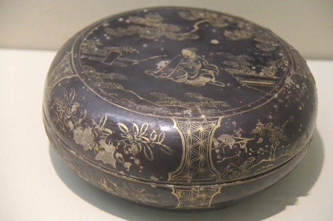 明代描金圆漆盒,缙云出土。