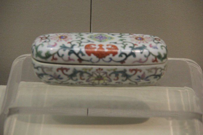 清乾隆粉彩宝相花腰圆盖盒,浙江博物馆馆藏。