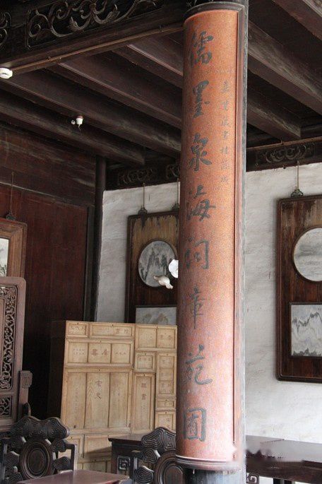 柱联。似乎是“儒墨泉海词章苑囿,冢壁遗逸幄帐樷残”。