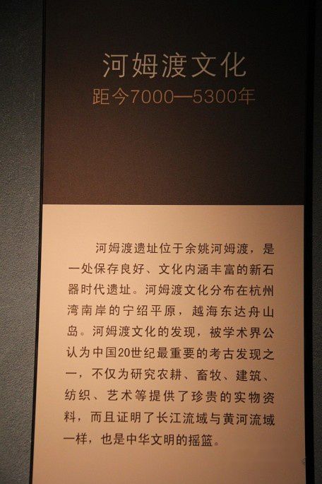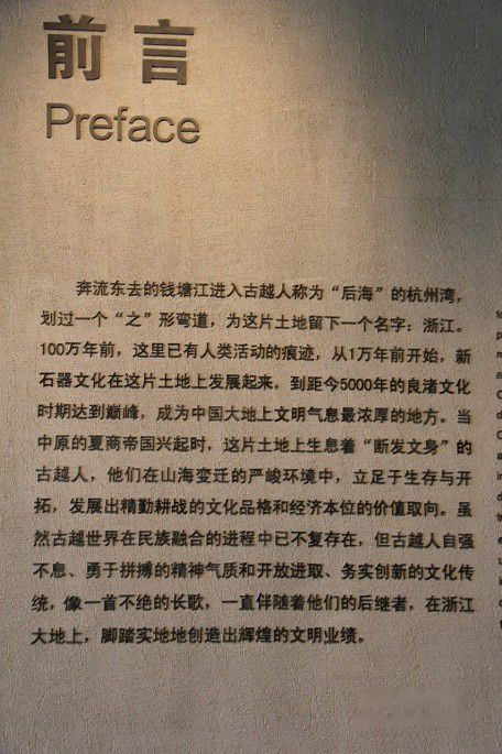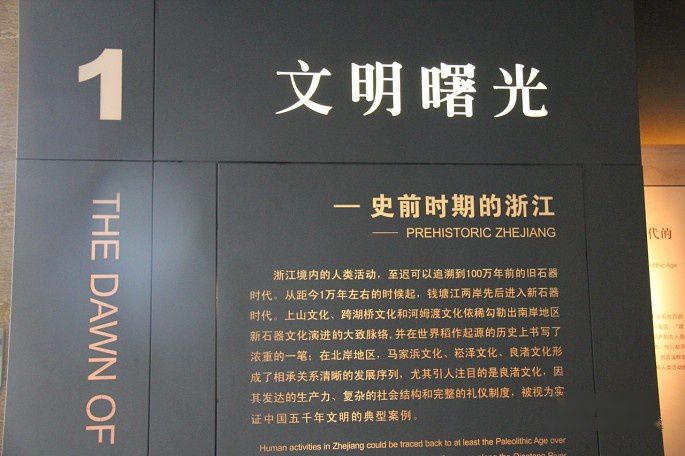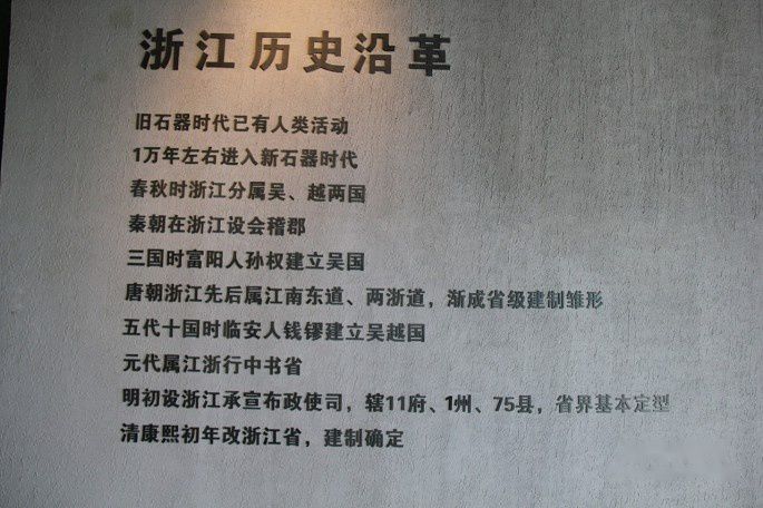 一楼的《越地长歌-浙江历史文化陈列》是浙江博物馆武林馆区的基本陈列,也是老陈花费时间最多、拍得最多的一个展览。此陈列以浙江“精勤耕战”的文化品格为主导,分为“文明曙光”、“古越王国”、“三吴都会”、“东南翘楚”、“繁庶两浙”五个部分。在展示风格上讲求精致而大气,内敛而富有张力。共展出文物约2000件(组),结合场景复原、模型复制、图画创作、多媒体视听等多种现代手段,为人们展现了浙江大地在不同的历史阶段的独特魅力。