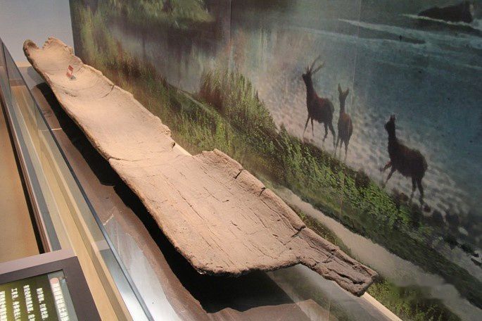 跨湖桥遗址出土的独木舟,舟体残长5.6米,制作精细、打磨光洁。舟体局部有经烧烤的黑焦面,应与舟体挖凿加工有关。这一发现证明地处中国东南沿海的浙江是最早使用独木舟的地区之一。