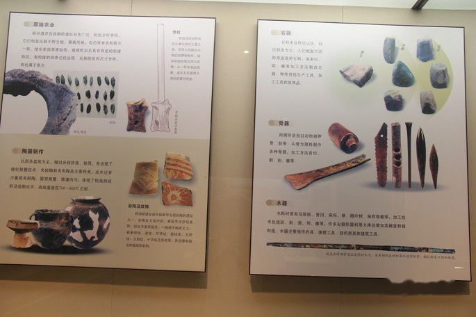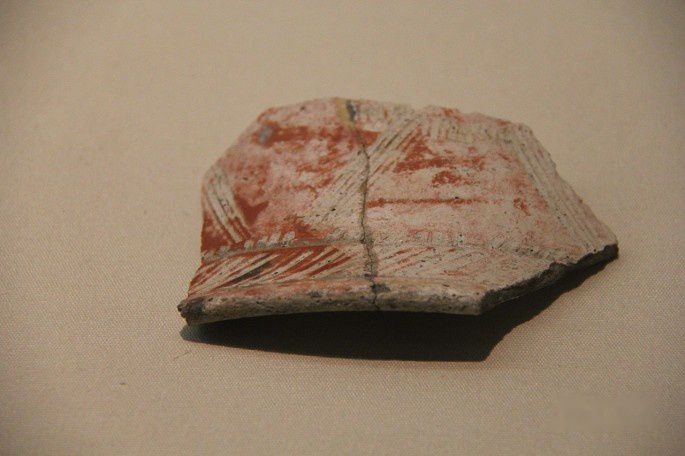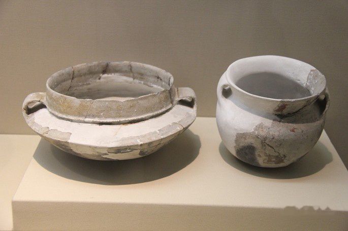 跨湖桥文化陶罐、彩陶片,萧山跨湖桥遗址出土。