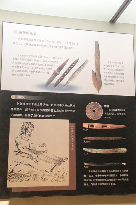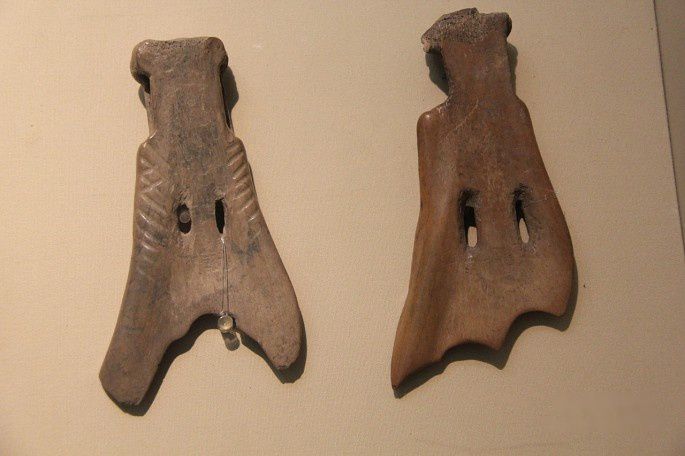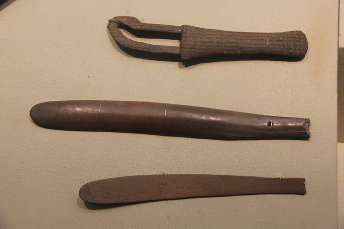 河姆渡文化木机刀、骨机刀,余姚河姆渡遗址出土。
