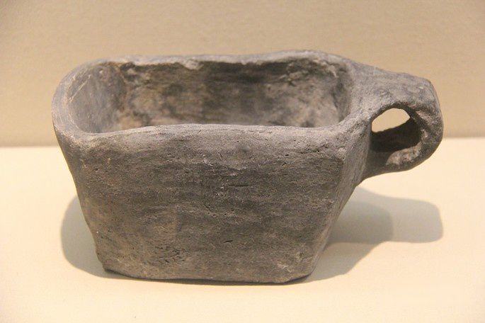 河姆渡文化陶单耳方钵,余姚河姆渡遗址出土。