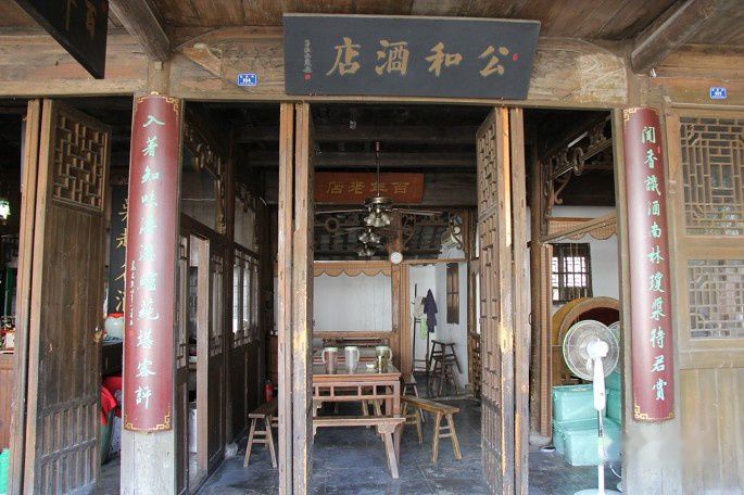 百年老店-公和酒店,题字出自九龄童之手(感谢黑陶鬶的提示)。门上有联云:闻香识酒南林琼浆待君赏,入著知味浔溪鲈莼堪客评。