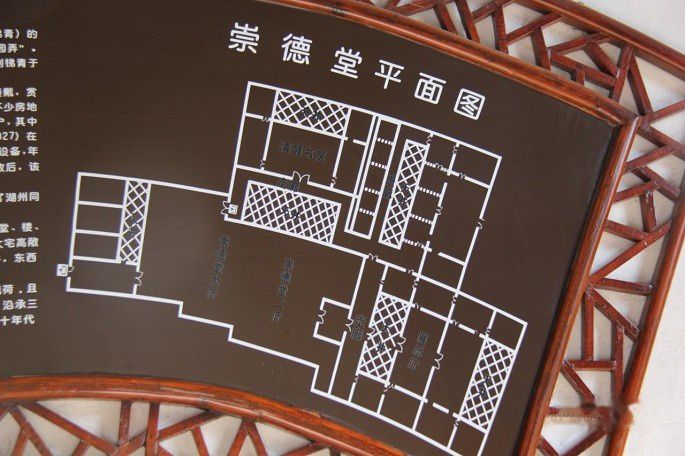 崇德堂总体建筑由南、中、北三部分组成,中部建筑以传统儒家文化思想理念的厅、堂、楼为主体。崇德堂正厅已毁,现存第四进楹楼。