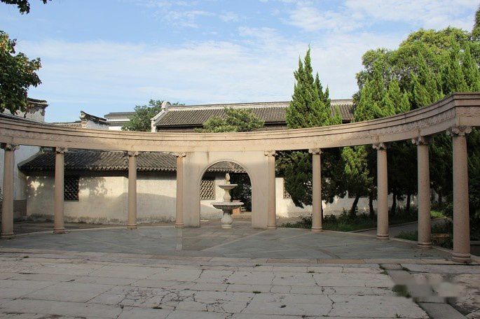但其顶部却是徽派的马头墙,用中国传统的青瓦及瓦当装饰屋顶,可谓中西合璧。
