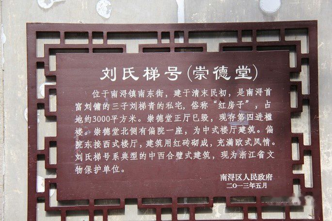 刘氏梯号(崇德堂)是南浔“四象”首富刘镛的三子刘安泩(号梯青)的私宅,俗称“红房子”。