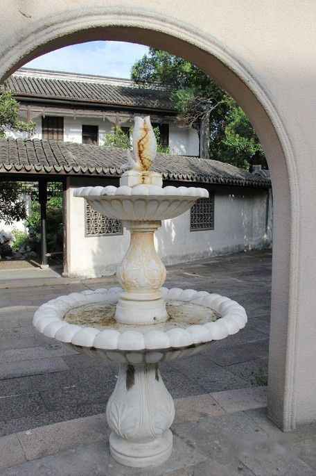 拱形门下的大理石雕喷泉,同属欧式风格。
