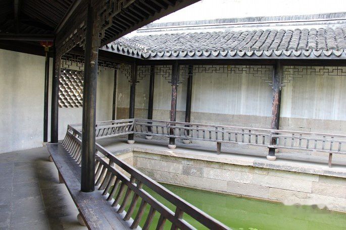 潭池边上有亭、回廊等建筑小品,配以美人靠,以供游人休憩。