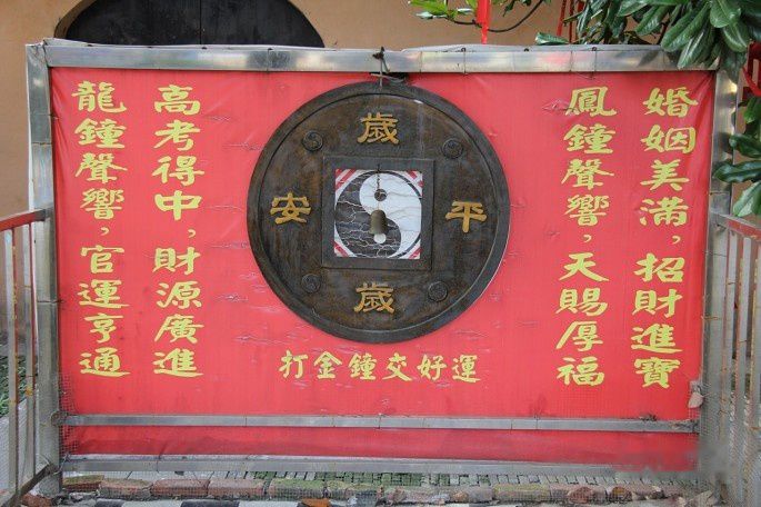 侧观黄大仙殿,大殿顶部的照妖镜闪闪发亮。