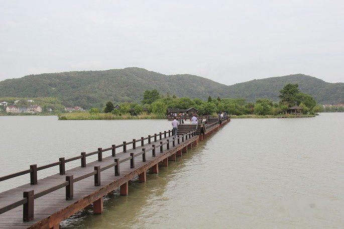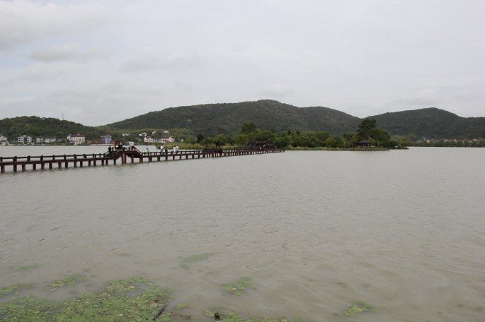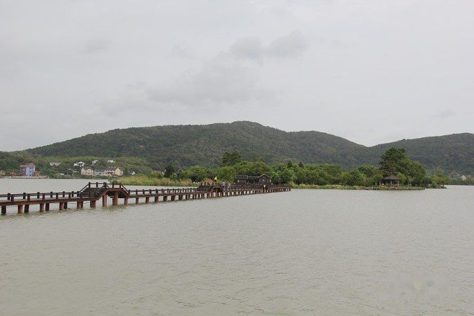 上午八点从上海出发,大约120km的路程走了两个小时,十点来到了位于杭州湾北岸海盐县境内的南北湖风景区。中秋小长假刚过,游人不多,所以车子可以直接开进景区,这样能少走不少路,若是平时则需停在售票处外的停车场。有鲍公堤横贯东西,将湖分为南北两半,故名南北湖。木栈桥通往北湖中央的小岛--白鹭洲。