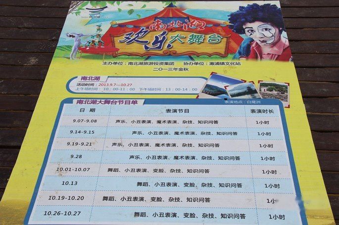2013年9月7日-10月27日期间的每个周末及节假日,白鹭洲上都会举办南北湖欢乐大舞台的表演,可惜今天不是演出的日期。