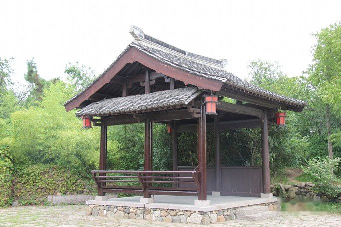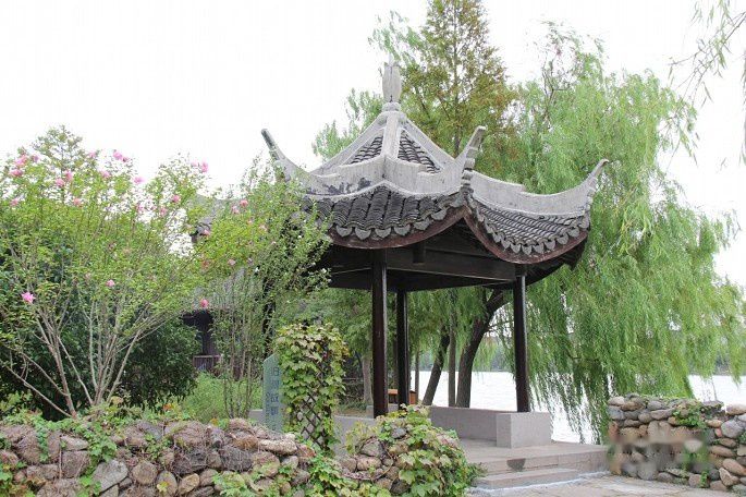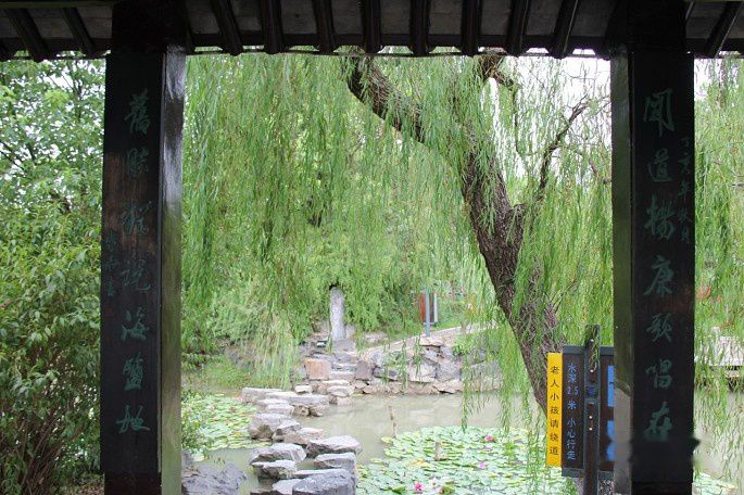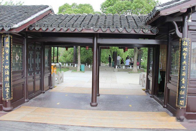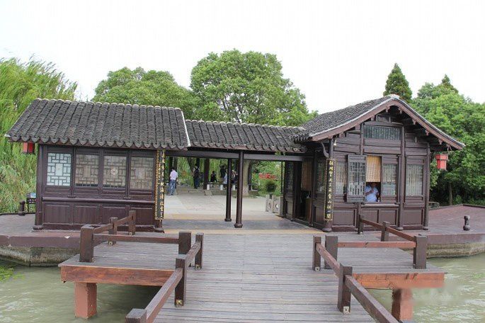 岛内有水榭、长廊、花木扶疏、绿树成荫。