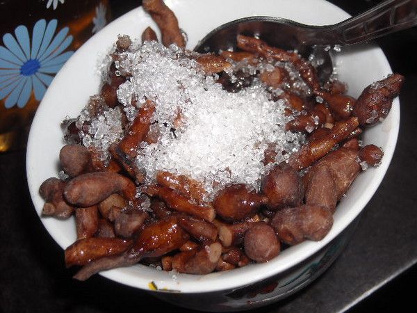 最上面撒的是糖,中间是人参果,下面铺的是酥油(到后来冷了,酥油就凝了。)