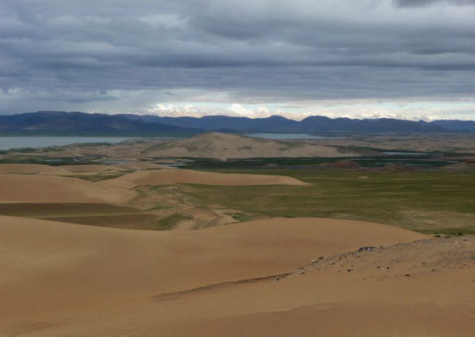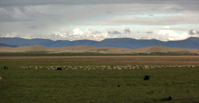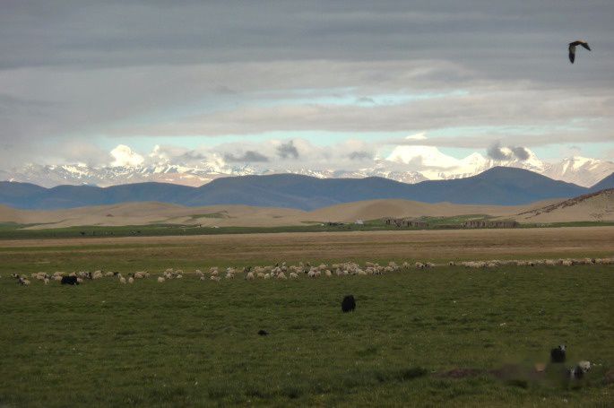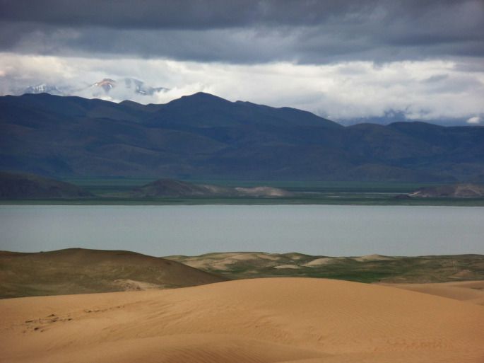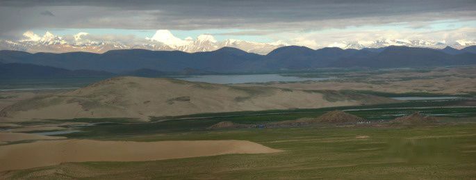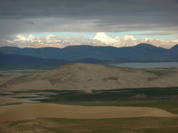 仲巴是雅江源第一县。历史上,曾因环境恶劣、沙进人退而三迁县城,如今公路边这一排排的沙丘让我们见证了昔日漫漫黄沙让野牦牛哭泣之说。远方在一字排开的山的阴影和乌云之间阳光穿透乌云照射出一条我们看不到边的缝隙,喜马拉雅山山脉上的雪山在这条缝隙中,被蓝天陪衬着,璀璨夺目,连绵无边;湿地草场上水草丰美、牛羊成群;湖里岸边水禽欢娱,飞鸟低空盘旋,就似在讴歌生命的顽强,这是一个自由自在的和谐家园!