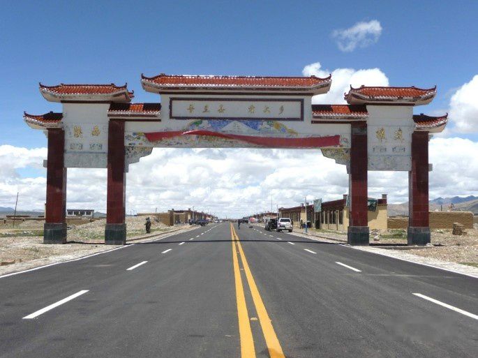 汽车又行驶了约两个小时,远远的我们又看到横建在公路上的一个大的牌坊,近前才知道是陕西省援建的“普兰县 霍尔乡” 的门牌。