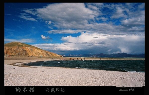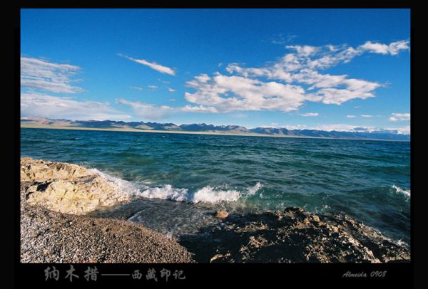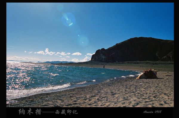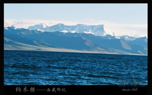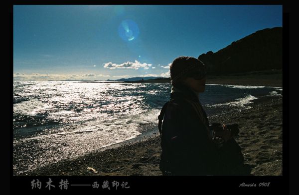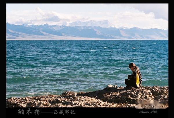 开扬的天,斑斑的眩光,深邃的高山湖泊;风很大很大,吹得远处的经幡哗哗响,沁凉的稀薄空气,呼吸、思想都变得平缓起来。一次次的旋转里,什么都看不见了,所有的一切都落在心底。友人的欢呼雀跃似乎与我都没了关系,没有了到处奔跑的欲望,静静地背风而坐,不想言语,将那纳木措彻底纯粹的色彩都印染到身体内。