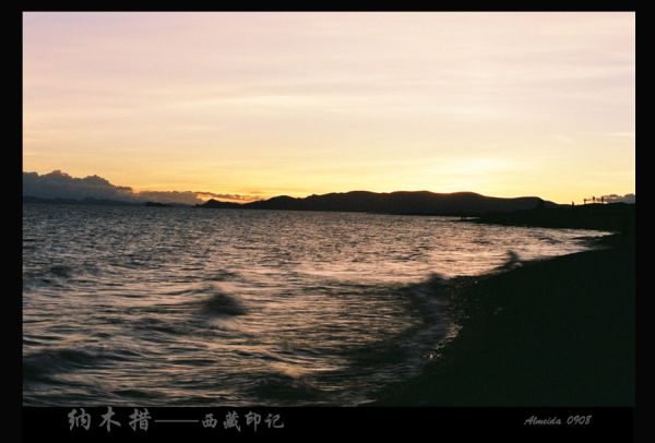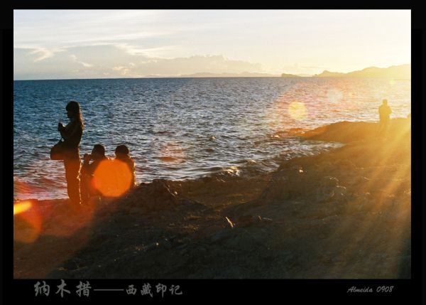 依着我们原定的行程,今夜就宿在纳木措——深寒的夜色里躺在湖边的长滩上看满空的星,想象它摇摇欲坠的样子;清晨起个大早,看那或许绚丽无比的日落与日出——脑海中的景象如此美妙,我们谁都不愿割舍,哪怕在我高反未缓的情况之下,剧烈的疼痛亦不能动摇半分。可是,总有些事情不如我们预想的美好,因为叶子、老许的高反,他们一再坚持今夜就赶回拉萨,也不同意两车分道而行的方案,甚至在阿闯拿东西之时做出了刁难之举。无奈之下,我们只是勉强与纳木措的落日匆匆一瞥,便只能不舍地折返。