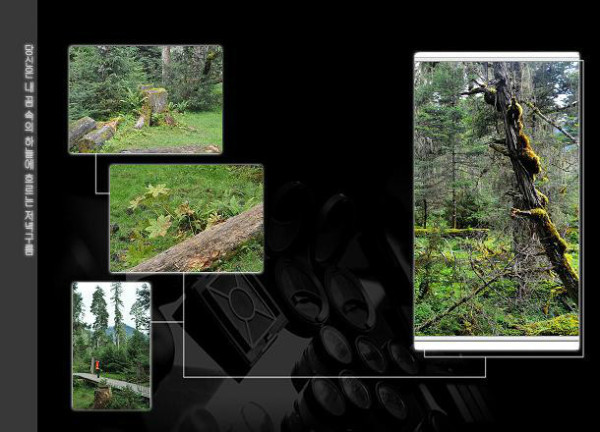 大原木,苔藓遍布其上,随手一拍都是一个风景明信片,你看右边那个,象不象一串小猴子在爬树?