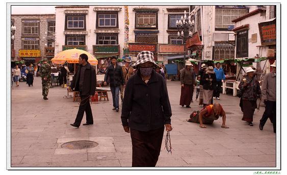 小胖鱼早餐的一碗米粥在上车前就贡献给了酒店的花草,喝了“高原康”、吸着氧气仍然让他寸步难行,走二步停三步,老美女陪着他坐在了八廓街前的广场上,我和凡乖跟着**去感受藏民心中的“圣路”。