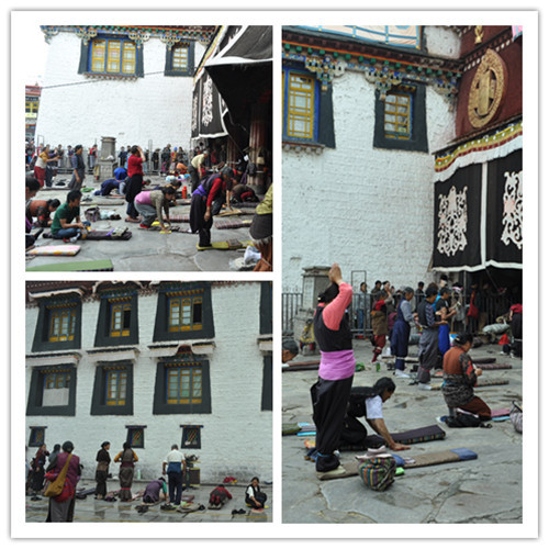 大昭寺被藏族人称为佛地,在藏族人心中的地位之高非其他地方可以相比,有很多的藏民会不远千里磕着长头来到这里。在大昭寺的门口、墙外,到处可见朝拜的人们,虔诚地俯下、起来,周而复始地重复着那单一的动作,就如他们心中那专一神圣的信念。