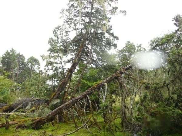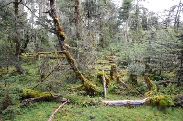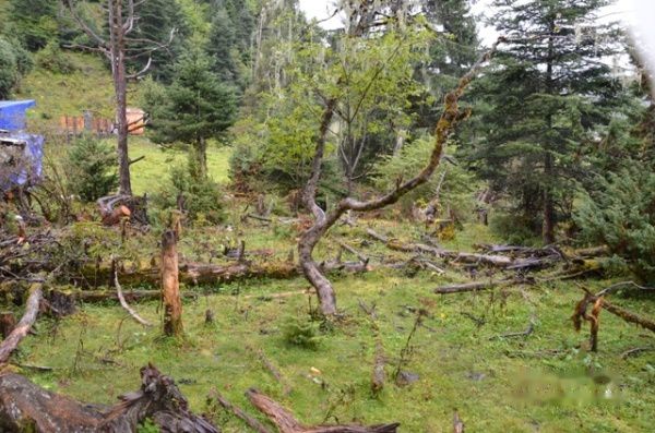 南伊沟有一处高原原始森林,独特的湿润气候保存着只有在无污染原生态环境下才能生长的植物(遍地松萝以及上千种珍贵药材)。