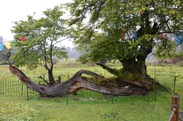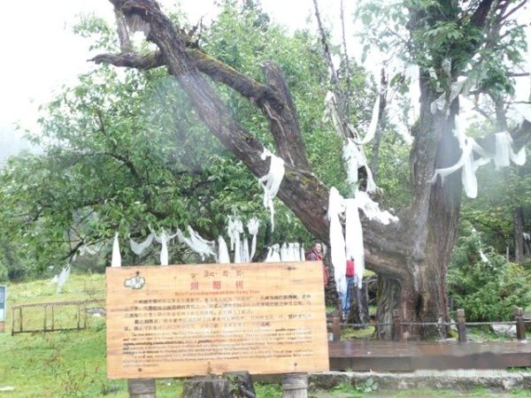 珞巴族供奉的阴阳神树。神树生有四种不同颜色枝叶,更为奇特的是树干天然生成酷似男性和女性**官形状。故名:阴阳树。