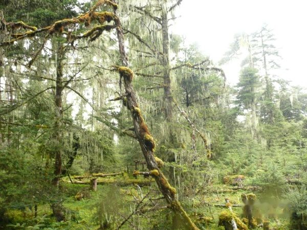 高高的松树枝挂满了松萝。松萝对环境要求极高,空气中有一点点污染就不能存活。