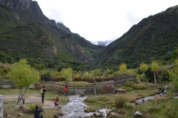 草甸中 有溪流、木篱笆、木板房和农牧民的村落,雪山、林海和田园勾画了一幅恬静优美的山居图。