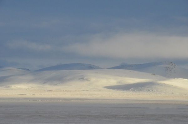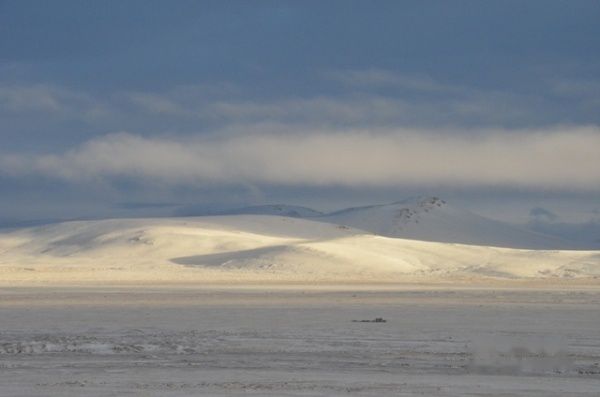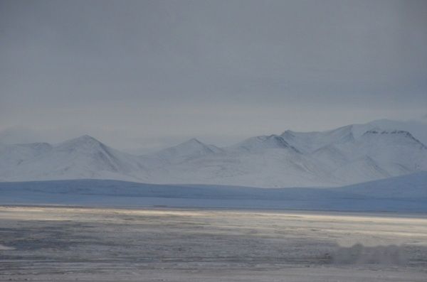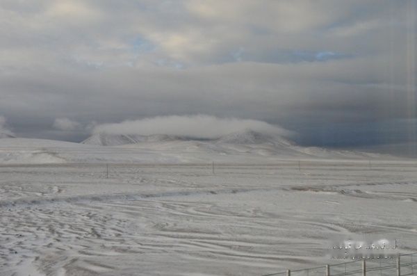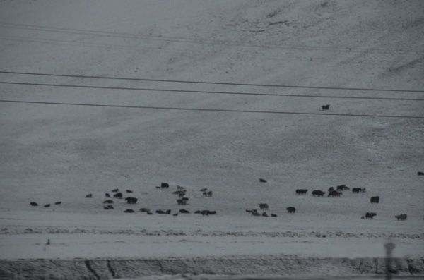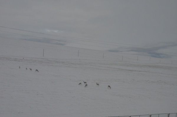 我从晚上八点一直睡到12日早五点多,车上的人大多还在沉睡。天终于亮了,车窗外下雪了,白茫茫一片,火车经过一夜疾驰,已进入可可西里地区。有人在惊呼看见藏羚羊,我连忙掏出相机站在车窗旁,看见藏羚羊、牦牛、小兔子就赶紧按快门,但是有时还是抓不住。