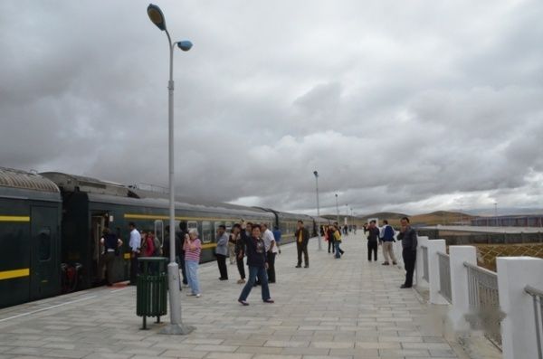 火车到了那曲车站,虽然海拔4600多米,人们还是下车观景。