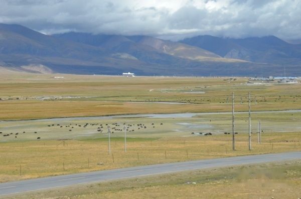 火车越接近拉萨,地势逐渐低下来,牛羊成群,植被也多起来。