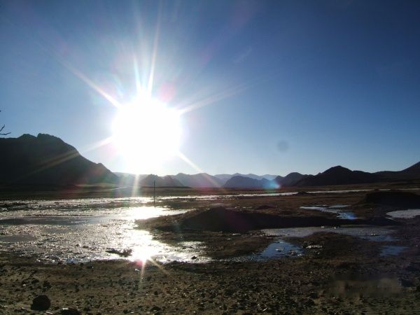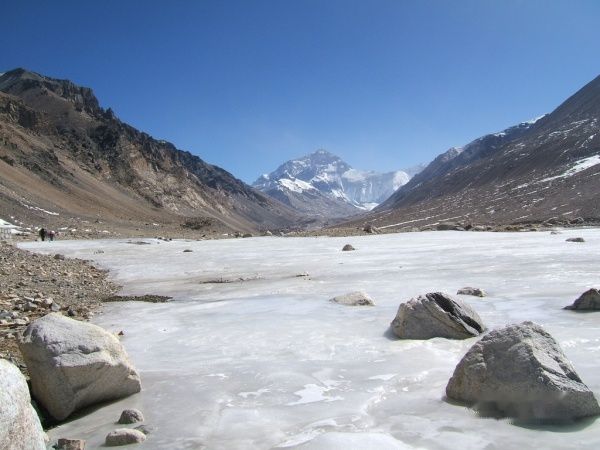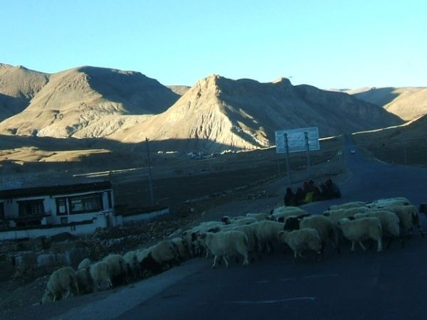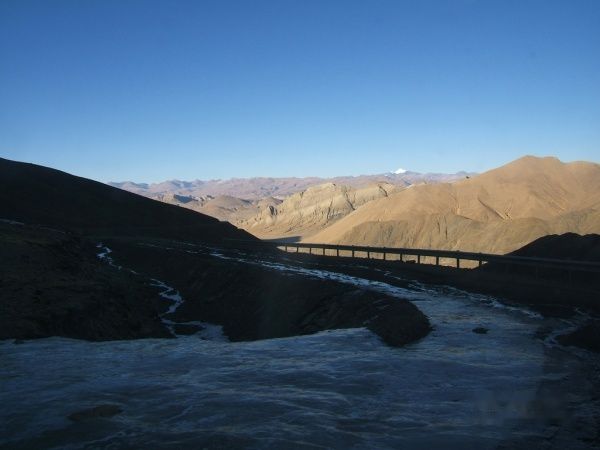 第二天一早8点就出发了,四双眼睛一刻不停的盯着窗外,寻找吃食店,终于在十点左右找到了一家四川人开的小店,冲进去,5个人吃了六个鸡蛋,十碗稀饭,四笼包子计62圆,摸着还未饱的肚子,大叫,老板,再来一碗的时候,却被告知木有了,细问才知道,原来我们都吃的是警察叔叔预订好的早饭,再吃下去,他们就得饿肚子了,唉,为了和谐,咱只能委屈自己的小胃了。一路颠簸,终于来到全世界海拔最高的寺庙---绒布寺。还有8公里就到大本营了,可一条冰路阻碍去路,彻底的断绝了我与珠峰的亲密,望着前方返回的4500,想到大本营已撤,于是只得抓紧时间,连夜赶回日喀则,但愿还能赶上那家小吃店的晚餐。晚上9点,看到小店的灯光,见到老板娘,就像见到了亲人。
