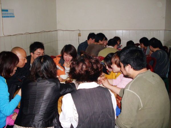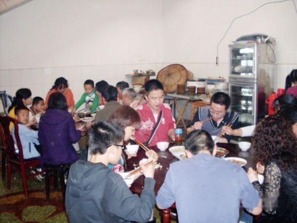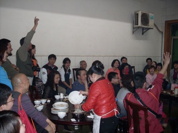 下山准备在新场古镇饱餐,有群友强烈建议吃毛血旺,于是我们就找到了还算著名的周血旺。看,大家都饿了