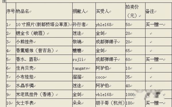 拍卖现场记录及这张详情表都由淡然制作,如有记录出错等,请告知本次活动的临时会计——淡然或者是小米。感谢淡然的辛勤劳动,认真负责活动现场记录并这么快就把表格做好了。辛苦了!