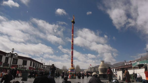 小曹上午去布宫了,我一个人去光明喝甜茶,然后在大昭寺等她。在大昭寺时警察不让我站中间,奇怪,说只能站边上。然后在边上跟卖经幡的藏族大哥聊了会。