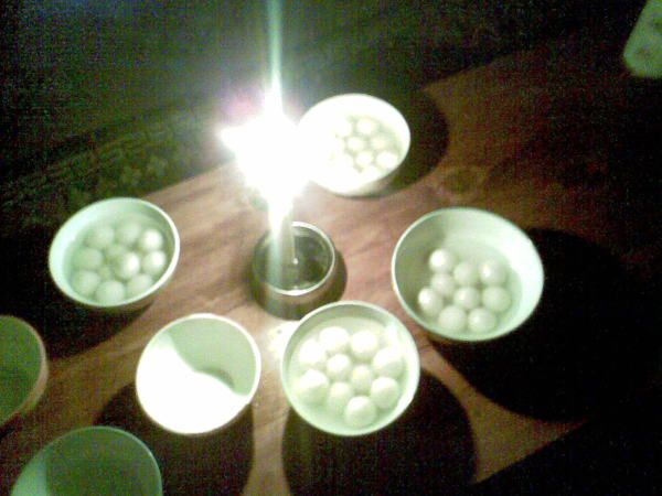 豆豆煮了汤圆,一起吃了个烛光汤圆~~