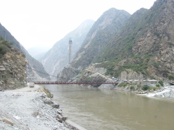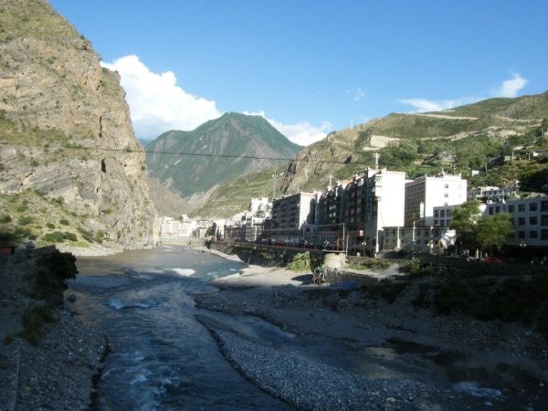 在西岸上了车后,就一直沿着大渡河边向北,路虽窄点但路面还算不错,在快到县城的时候,往右边对岸看,可望见壮观的梭波古碉楼群。12时多,到达丹巴县城(章谷镇)。我住进车站旅馆,单间公卫,30元/天。