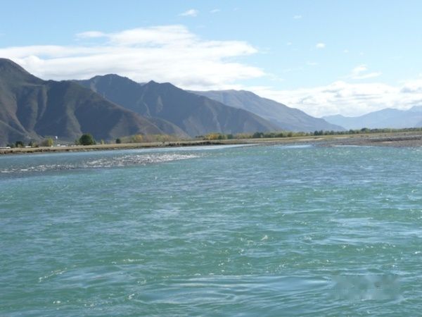 过了米拉山口,现在看到的是尼洋河了。 中流砥柱伫立在尼洋河的激流中。