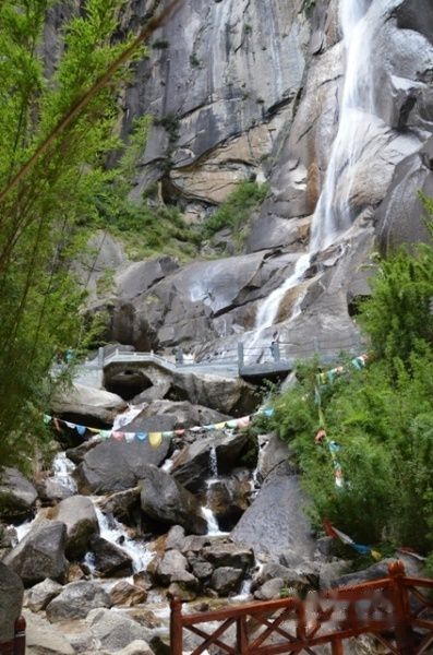 走到沟底近距离观看从天而降的瀑布,更震撼了。