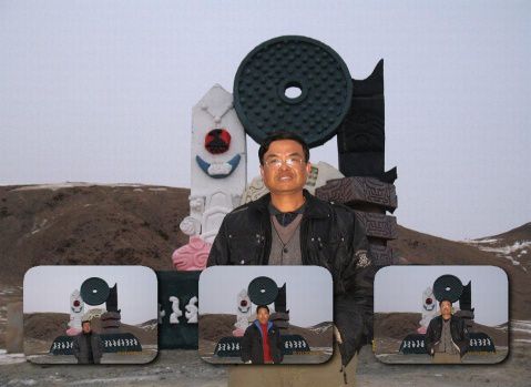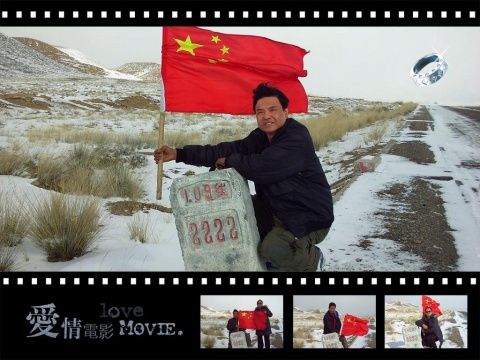 车辆在行驶到国道2222公里处时,w队让我们下车留影。可能是车中紧张的气氛还没有完全散去,二位司机都不去。气得我们w队直骂:真想让我们都死在这暴风雪的路上?最应该朝拜的就是你们二位司机,你看看你们现在的样子,还真的不让我们一起回兰州吗?在w队的极力劝说和开导下,司机小z总算下车朝拜一番并留下一张满是愁闷的苦照。