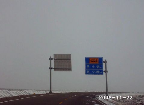 出镇的时候,一名指挥交通的警察特地上来告诫小q时速不要过50,防止出事。可能是没有吃上湟鱼的原故,出了察尔汗我们就都混混欲睡了。