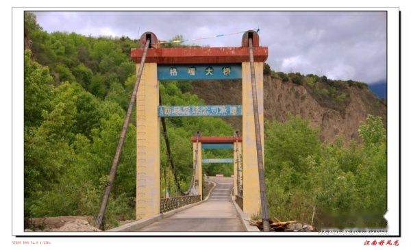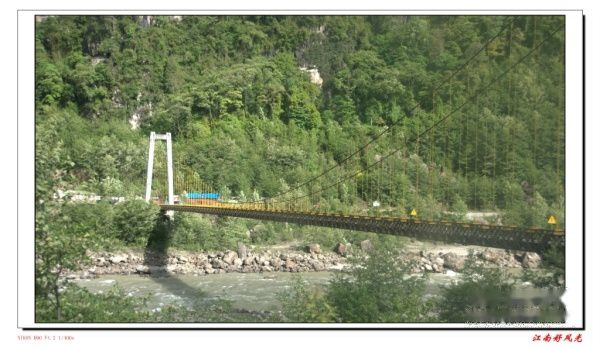 大约9点半左右,车子到达一座临时性的铁锁桥。车子在这里每次过桥只限一部车通过。过完一辆第二辆才能通过,而且大桥两头都有全副武装的士兵警戒把守。巴桑说:“这就是‘通麦大桥’,这里是易贡藏布和帕隆藏布两江汇合的地方,是连接内地与拉萨的咽喉要道。10年前这儿原本有一座永久性的钢筋水泥浇筑的大桥。2000年易贡藏布河扎木弄沟发生特大山体滑坡,特别是易贡湖水溃坝暴泻后冲断通麦大桥,造成易贡藏布和雅鲁藏布大峡谷地区桥粱全部冲毁。”