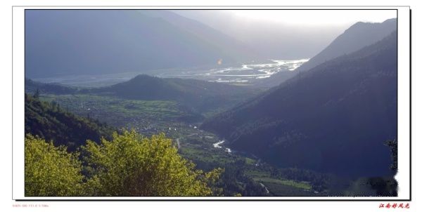 6:32分我们起程,翻过山顶一路下行。大约7点20左右,车停了下来。此时,天气不错,这是个观看尼洋河风光的一个观景台。此时,阳光西照,在山间俯视宽阔的河谷,弯延的尼洋河、星星点点的村庄、大片的农田,真是一派江南水乡的好风光。
