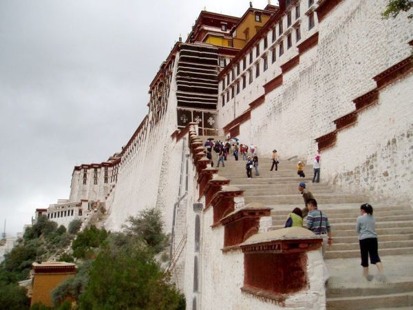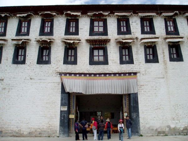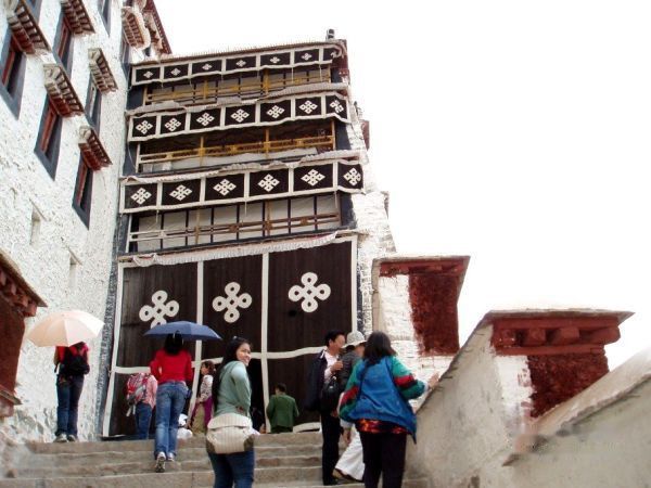 从布宫城墙大门口进入,穿过雪城,爬上阶梯,这样过了半小时,这才到达了白宫外大门,这里是布达拉宫的东大门。