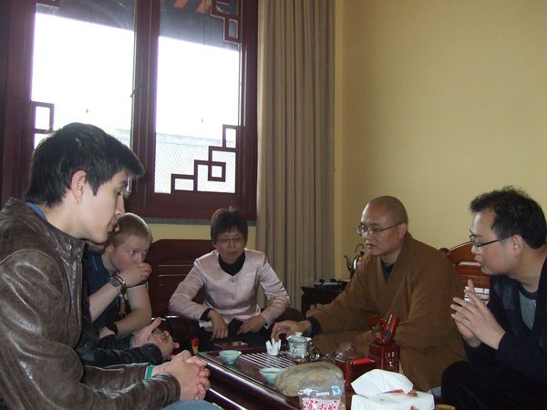今天下午,和菩提树下老师们,以及对中国佛教文化怀有浓厚兴趣的TOBBY等人一起来到大佛禅院,边喝茶,边向法师请教佛学,法师谈笑风生中,尽藏禅机,各位在座者当下即在法师带领下,对打坐即刻体验,感受那自然而来的风从鼻孔的出入,法师说当有人破门而如入时,我们关注的是进来的人,而不是那扇门,因此,细细地体会进来的风!